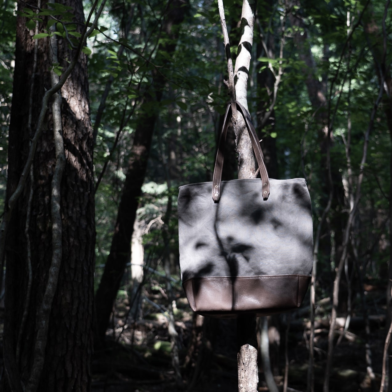 繊細な表情に加え、経年変化に適した色彩を施しています。また、柿渋染めをした帆布と合わせたデザインとし、一つのカバンの中にも適材適所の素材配置の設計を追求しています。